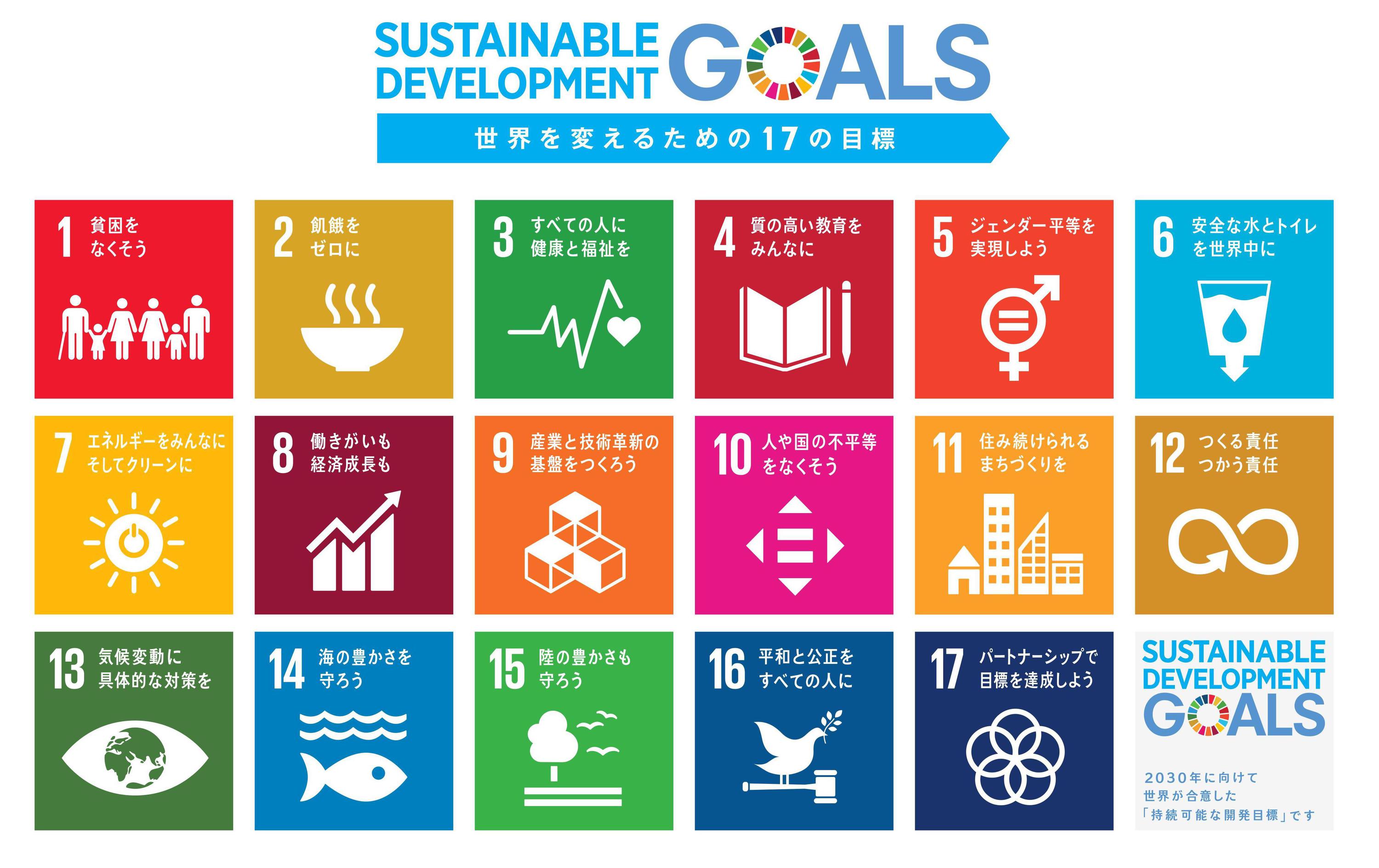 SDGsとは、その中に掲げられた17の目標と169のターゲットからなる「持続可能な開発目標(Sustainable