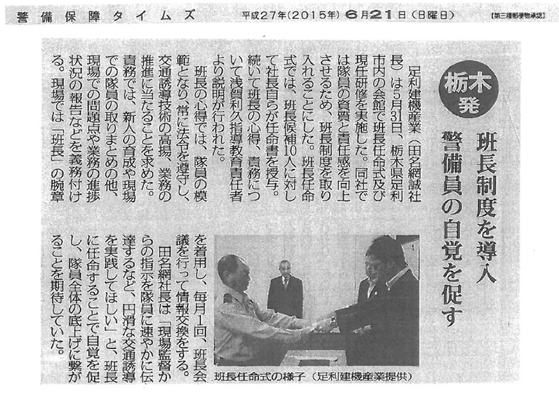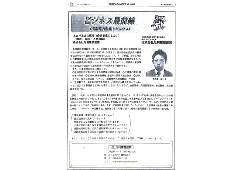 栃木県内で警備業を営む企業の売上ランキングにて第2位との発表がございました。